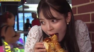 【画像】三宅絹紗アナ、アメリカで巨大ホットドッグ食べる
