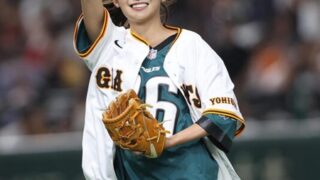 【画像】始球式の新人アナ・五十嵐にいか、躍動感ありすぎ
